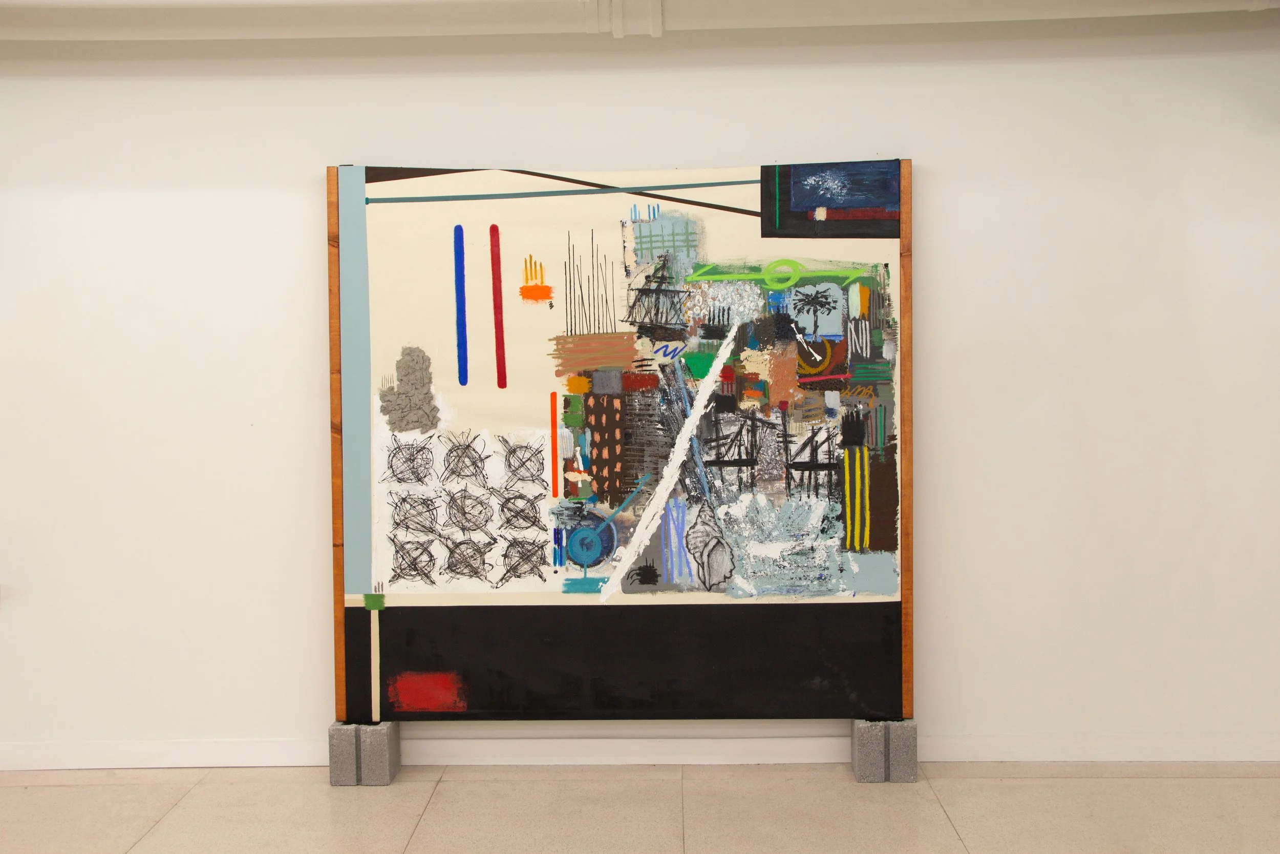 Within these canvases, a thicket of brushstrokes and marks conveys a frenetic energy, emanating from the dramatic and inspired forms he creates. Andrew firmly establishes his position within the realm of abstraction, unconcerned with formal purity or the confines of precise lines. Instead, he ventures to complete the figurative vocabulary of specific landscapes, allowing the viewer to immerse themselves fully within the essence of his art.